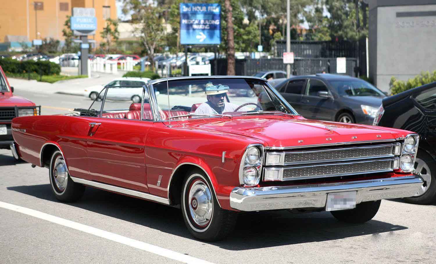 Más actores, en este caso el conocido Doctor House, de la serie televisiva, Hugh Laurie y su Ford Galaxie Convertible del 66.