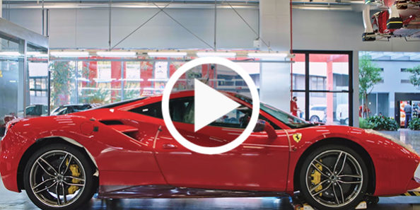 Y es que no todo son coches clásicos, bueno sí pero en esta ocasión nos vamos a dar un capricho, hemos encontrado un vídeo en él nos ofrecen una visita guiada por el interior de la fábrica que Ferrari tiene en Maranelo y no hemos podido evitarlo, nos hemos apuntado. El recorrido nos muestra el interior de la fábrica mientras vemos la fabricación y montaje de los distintos componentes que forman el coche, es un Modelo 488 presentado en 2015. Nuetro guía es Vincenzo Regazzoni, en la compañía desde 2004 y responsable de producción desde 2015.