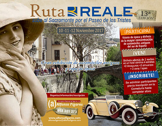 En esta, la decimotercera edición de la Ruta Reale de Automóviles Antiguos que, un año más, organiza la Correduría de Seguros Alfonso Fígares, la Ruta subió al Sacromonte por el Paseo de los Tristes intentando sumar la belleza y elegancia de esos magníficos automóviles  a las ya de por sí bellas estampas que podemos disfrutar…